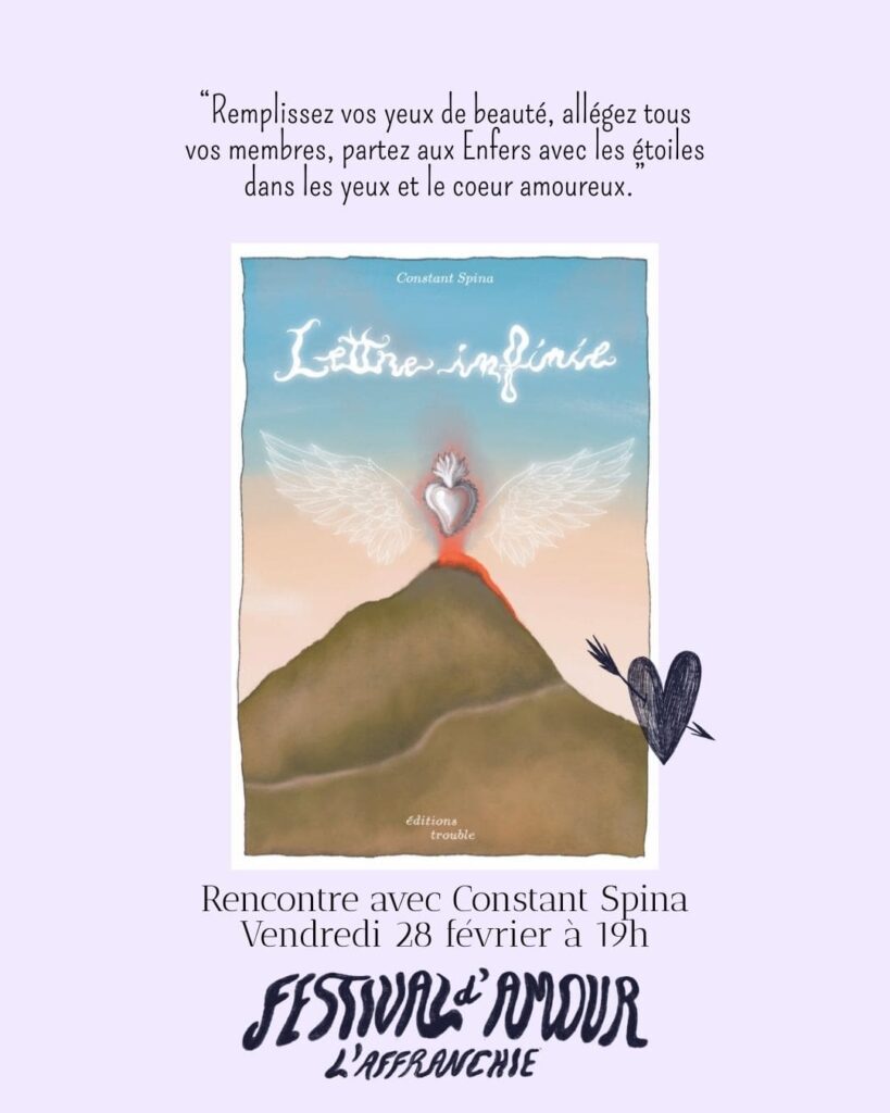 💘 Pour cette nouvelle édition du FESTIVAL D’AMOUR, L’Affranchie librairie vous invite à continuer de réfléchir, le cœur au bord des lèvres et l’envie au fond des yeux à cette question entêtante : comment pouvons nous nous aimer mieux ?